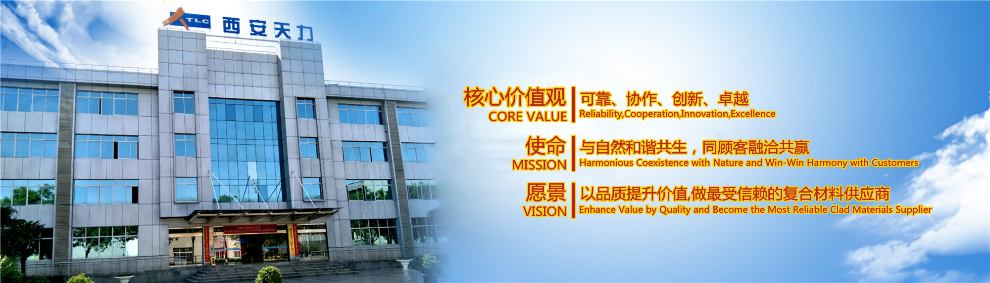 西安天力金屬復(fù)合材料股份有限公司是西北有色金屬研究院(集團(tuán))產(chǎn)業(yè)化上市公司“西部材料”控股的獨立法人公司,是專業(yè)從事層狀金屬復(fù)合材料研究及生產(chǎn)的高新技術(shù)企業(yè),成立于2003年12月25日,位于西安經(jīng)濟(jì)技術(shù)開發(fā)區(qū)涇渭工業(yè)園,注冊資本10895萬股,擁有生產(chǎn)廠房23000余平米,各類生產(chǎn)設(shè)備200余臺套及兩塊條件優(yōu)越的爆炸復(fù)合場地,形成年產(chǎn)25000噸層狀復(fù)合材料的生產(chǎn)加工能力……